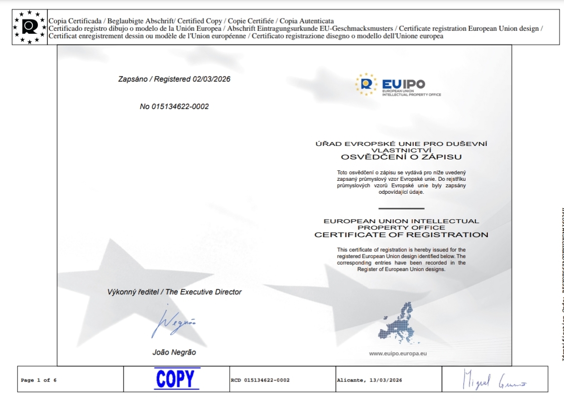 🇪🇺 Evropský patent: Unikátní průmyslový vzor, který nikde jinde neseženete.